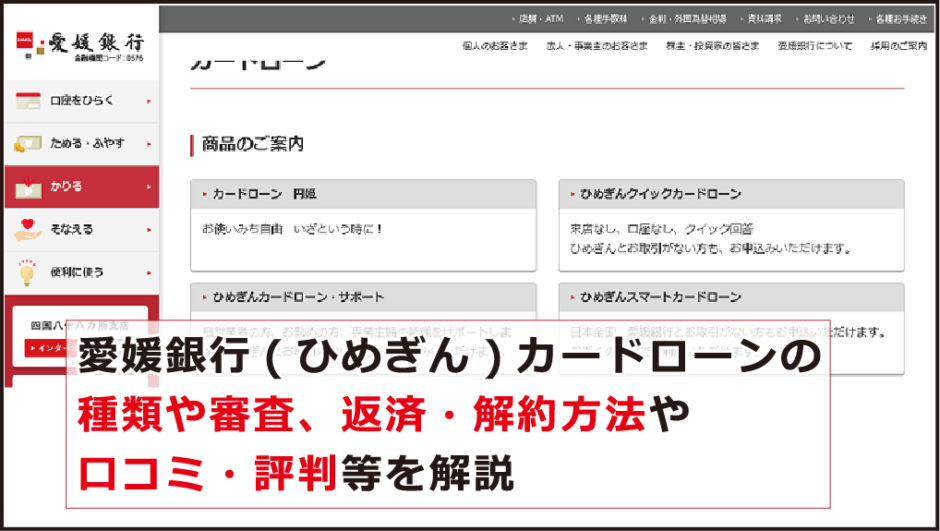 愛媛銀行 ひめぎん カードローンの種類や審査 返済 解約方法や口コミ 評判等を解説 今すぐお金借りるex